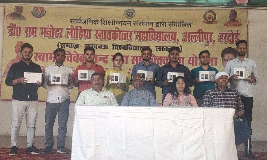 Hardoi News: डॉ राम मनोहर लोहिया स्नातकोत्तर महाविद्यालय, अल्लीपुर हरदोई में स्वामी विवेकानंद युवा सशक्तिकरण योजना के अंतर्गत स्मार्टफोन/ टैबलेट वितरण कार्यक्रम का आयोजन किया गया ।कार्यक्रम का शुभारंभ मां सरस्वती के समक्ष दीप प्रज्वलन मुख्य अतिथि आर.पी.शर्मा व अध्यक्ष संजय श्रीवास्तव ने किया। टेबलेट वितरण का कार्यक्रम में परास्नातक (एम.ए.,एम.एस-सी.) कक्षाओं के छात्र-छात्राओं को टेबलेट वितरण किया गया। इस अवसर पर मुख्य अतिथि आर.पी.शर्मा ने कहा कि इस महाविद्यालय के द्वारा बच्चों को आनलाइन शिक्षण दिया जा रहा है छात्रों के लिए ई लर्निंग के शिक्षण सिमग्री उपलब्ध करायी जा रही है । टैबलेट की भूमिका अद्वितीय है तकनीकी युग में इससे छात्र विभिन्न विषयों की जानकारी सरलता से प्राप्त कर सकते हैं आप सभी अपने स्मार्टफोन टैबलेट का उपयोग आगे की शिक्षा में कर सकते हैं।