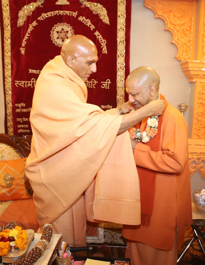 स्वामी अवधेशानंद ने किया सीएम योगी का सम्मान, प्रसाद भी कराया ग्रहण