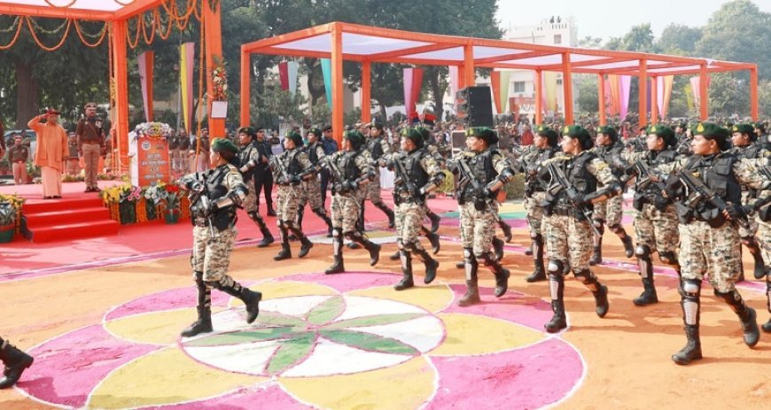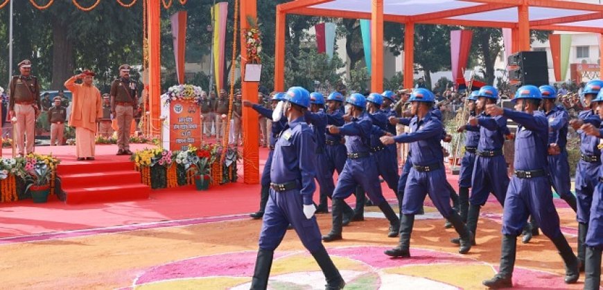 Lucknow: मुख्यमंत्री ने राष्ट्रपति पदक विजेता होमगार्ड्स कर्मियों को किया सम्मानित, परेड की ली सलामी।