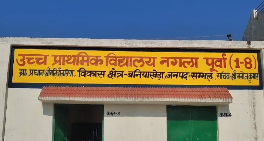 जनपद सम्भल के थाना कुढ़फतेहगढ़ क्षेत्र अंतर्गत ग्राम नंगला पूर्वा स्थित उच्च प्राथमिक कंपोजिट विद्यालय में धार्मिक सामग्री लगाए जाने