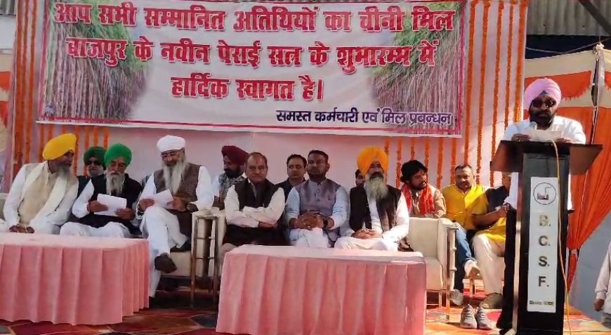 वही विरोध के चलते गन्ना मंत्री एवं गदरपुर विधायक भाजपा जिला अध्यक्ष शुभारंभ में नहीं पहुंचे।भाकियू के प्रदेश अध्यक्ष करम सिंह पड्डा ने संबोधित करते हुए कहा किसानों को प्रति एकड़ 14627 का घाटा हो रहा है उसके बावजूद भी किसान फैक्ट्री चलाने के लिए गन्ना लगा रहे हैं और फैक्ट्री में गन्ना लाकर दे रहे हैं उन्होंने कहा फैक्ट्री किसाने की मां है। और मां को सही सलामत रखना किसानों का कर्तव्य है उन्होंने सरकार से अनुरोध किया है कि किसानों का गन्ना मूल्य 500 प्रति कुंतल किया जाए जिससे किसानों का घाटा पूरा हो सके इसके साथ ही उन्होंने कहा है कि जब शुगर फैक्ट्री के प्रधान प्रबंधक हरवीर सिंह इसका चार्ज लिया था उसे समय यह फैक्ट्री मरी हालत में थी और उनके द्वारा फैक्ट्री को इतने सुचारू रूप से चलाया गया की 8 करोड रुपए के फायदे से चली।वरिष्ठ भाजपा नेता एवं बाजपुर गुरुद्वारा सिंह सभा के अध्यक्ष कुलविंदर सिंह किंदा ने किसानों एवं श्रमिकों को संबोधित करते हुए कहा किसानों एवं श्रमिकों के सहयोग से फैक्ट्री दिन प्रतिदिन तरक्की कर रही है और सभी के सहयोग से फैक्ट्री को लाभ हो रहा है।