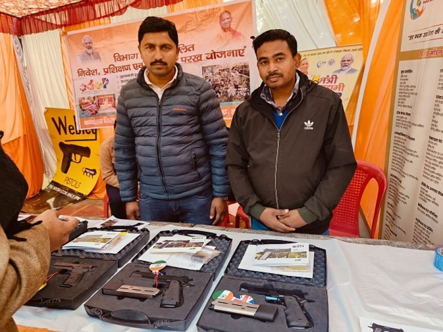 मंत्री नितिन अग्रवाल को पंचायत राज विभाग द्वारा लगाई गई स्टाल पर DCSLWM ज्योतिष दिवाकर द्वारा मॉडल विलेज के बारे में जानकारी देते हुए।