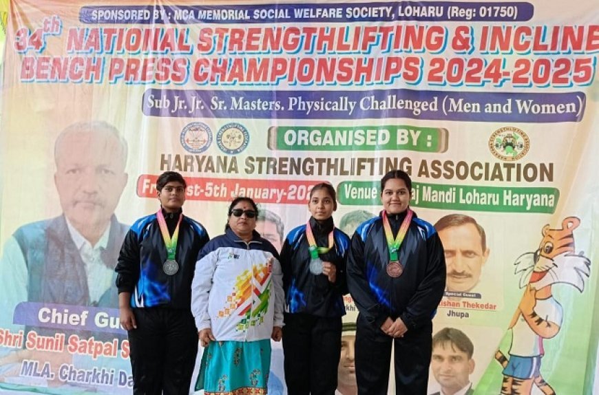34वीं नेशनल स्ट्रेंथलिफ्टिंग एंड इंक्लाइन बेंच प्रेस चैंपियनशिप 2024 -2025 सब जूनियर , जूनियर , सीनियर,मास्टर, दिव्यांग (महिला और पुरुष) का आयोजन दिनांक 1-6 जनवरी हरियाणा के लोहारू में आयोजित हुई। जिसमें महिला व पुरुष प्रतिभागियों ने कई पदक जीते। कोच पूनम तिवारी के नेतृत्व में यूपी ने शानदार प्रदर्शन करते हुए महिला वर्ग में एक गोल्ड, 3 रजत पदक और 2 ब्रॉन्ज पदक जीते जबकि पुरुष वर्ग में 4 गोल्ड, 2 रजत और 3 कांस्य पदक प्राप्त किए।
