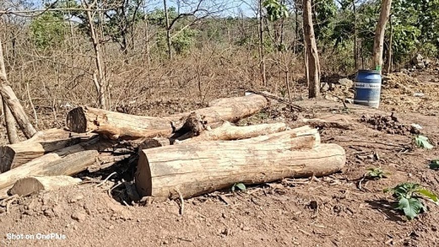हो रही दर्जनों डम्परों को आवाजाही,वन संपदा को नुकसान , जंगल की सुरक्षा पर उठ रहे सवाल,सागौन की बल्लियाँ काटकर बिछा दी रोड के किनारे ,काटे गए पेड़ भी छोड़ दिये रेल्वे ठेकेदार के भरोसे...