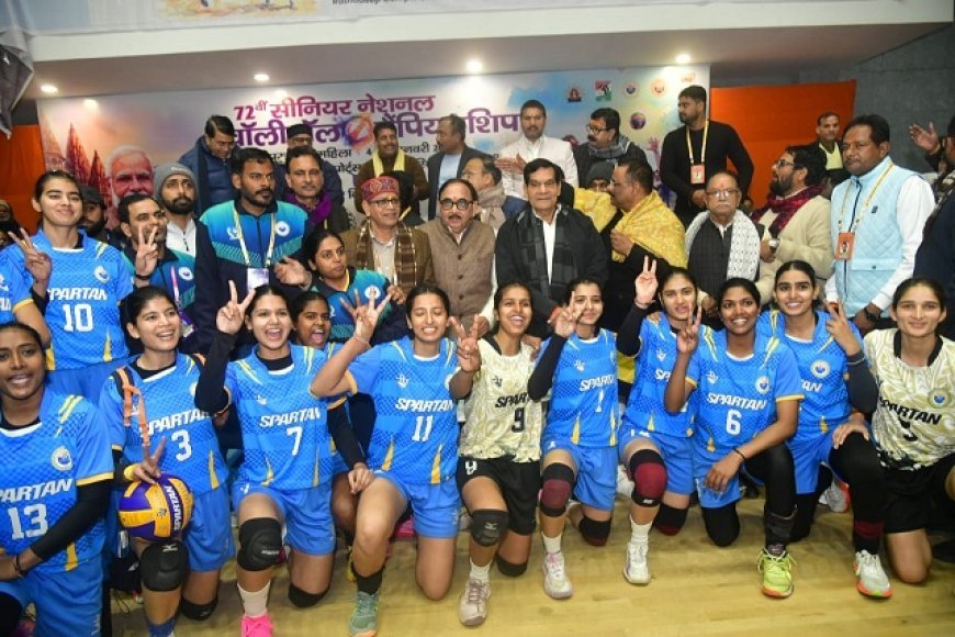Varanasi: वाराणसी में 72वीं सीनियर नेशनल वॉलीबॉल चैंपियनशिप में नगर विकास एवं ऊर्जा मंत्री ए के शर्मा ने किया प्रतिभाग।