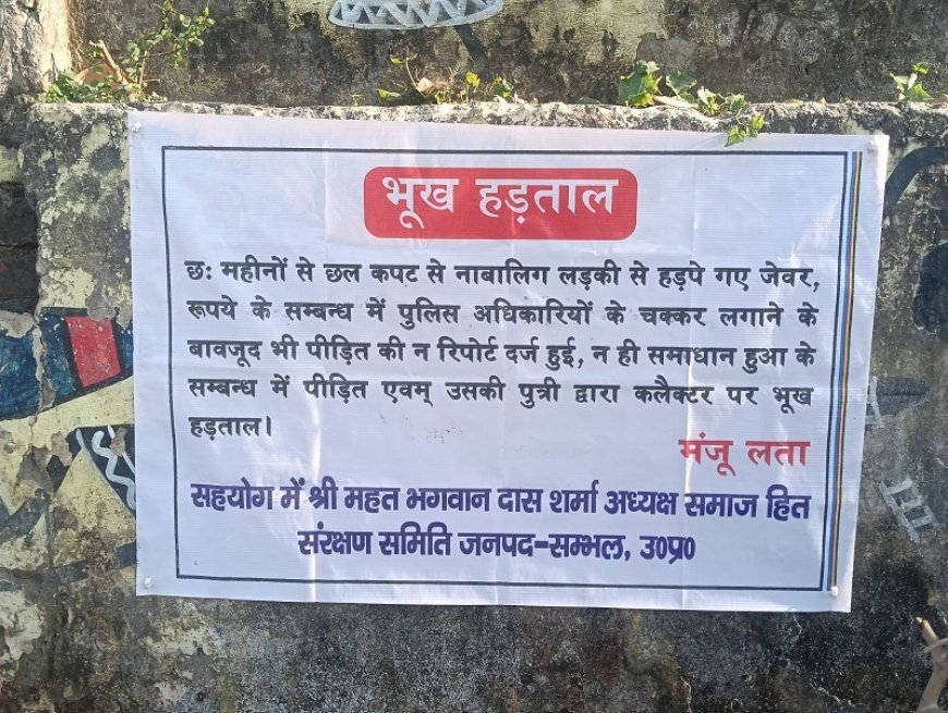 Sambhal: नाबालिग से ठगी के आरोप में महिला भूख हड़ताल पर बैठी, न्याय की गुहार।